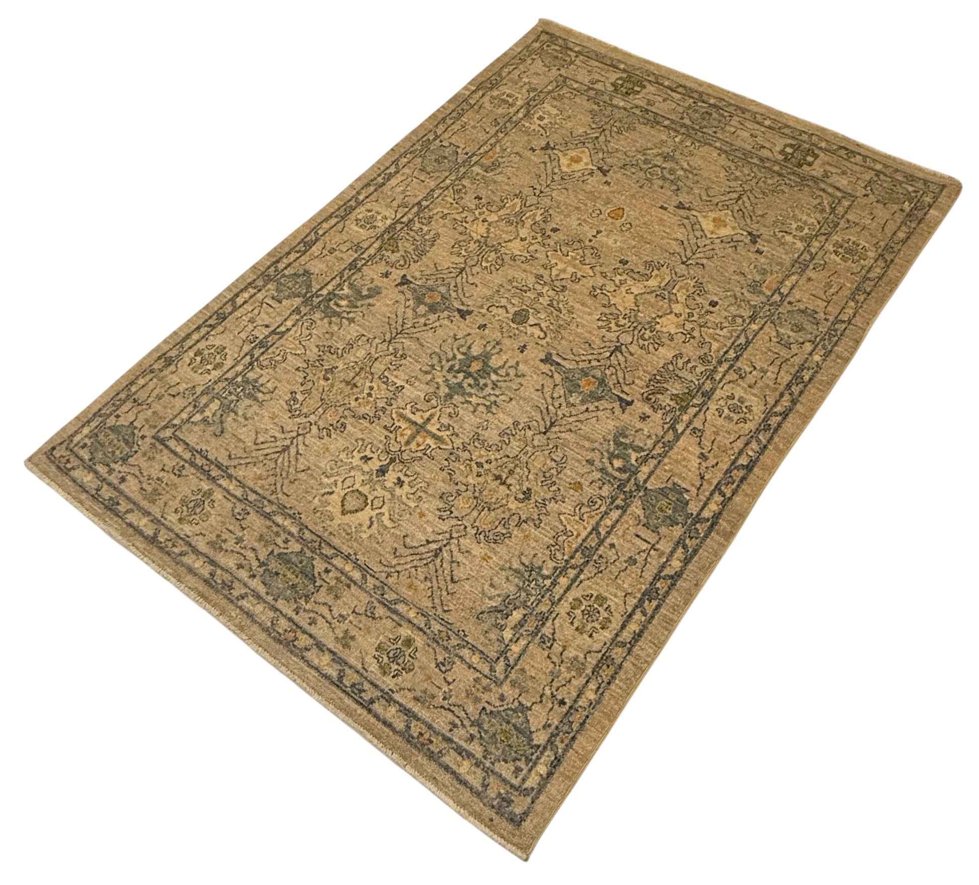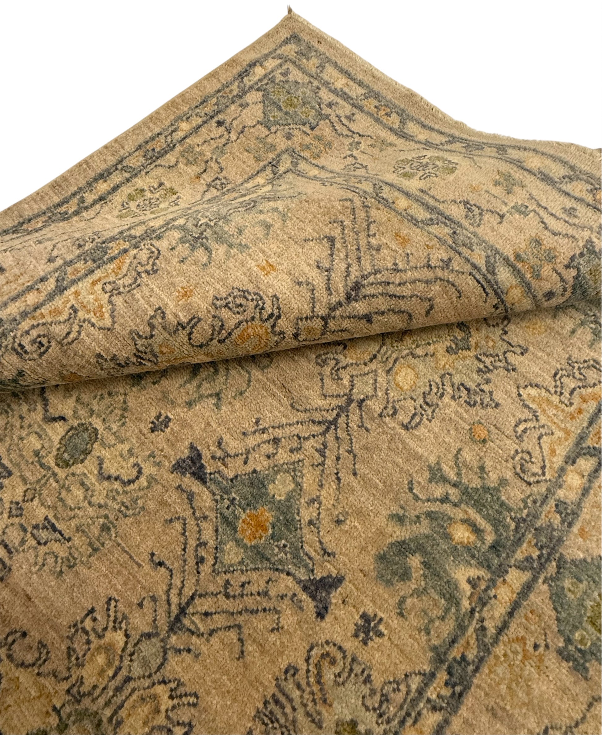 Afghaanse Ushak Ziegler tapijt gemaakt van handgesponnen wol en plantaardige verfstoffen.