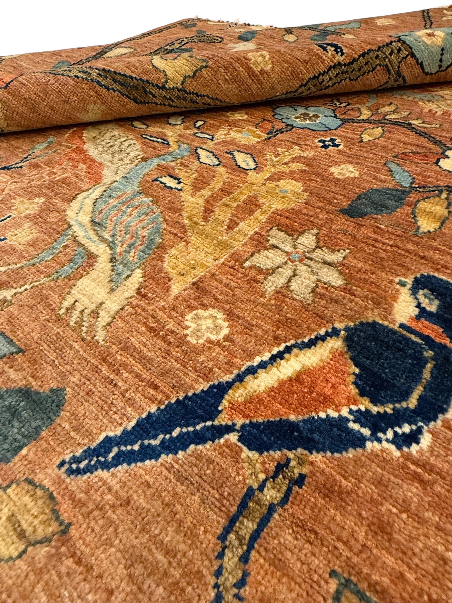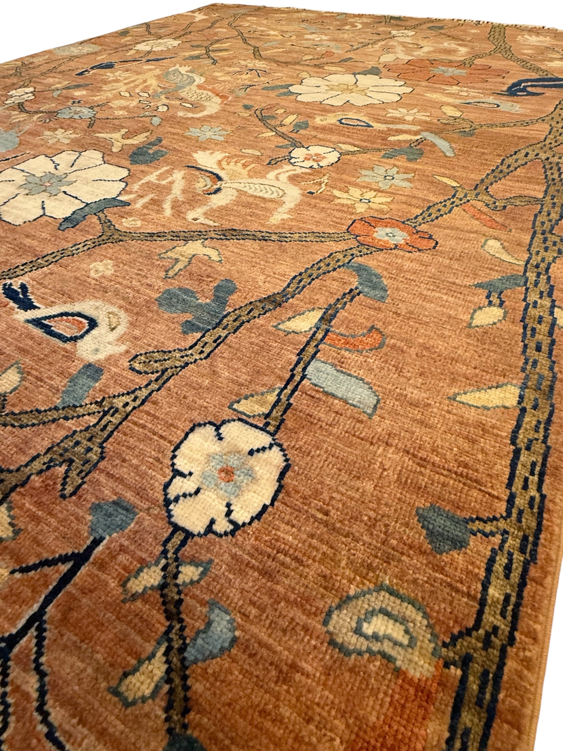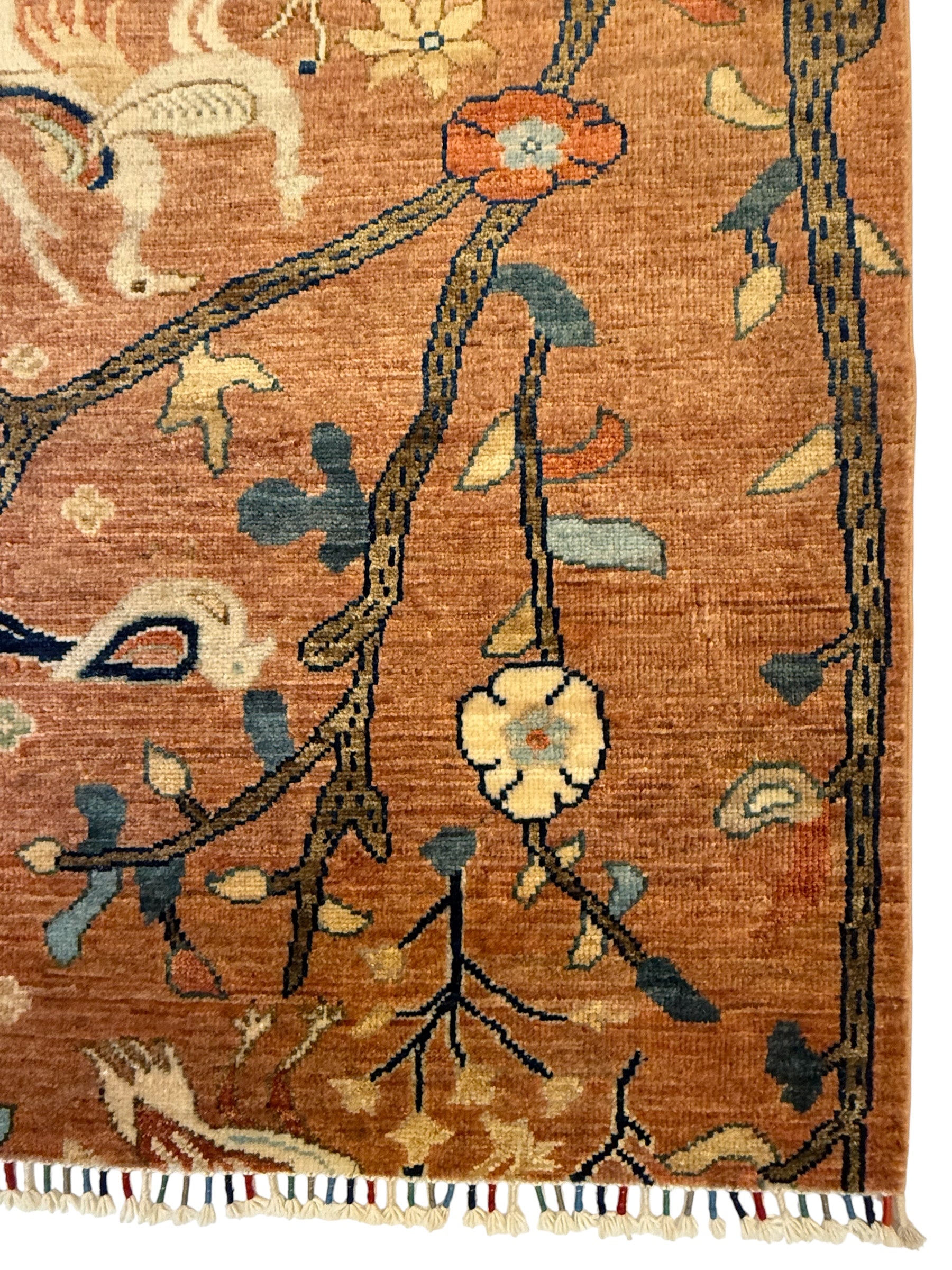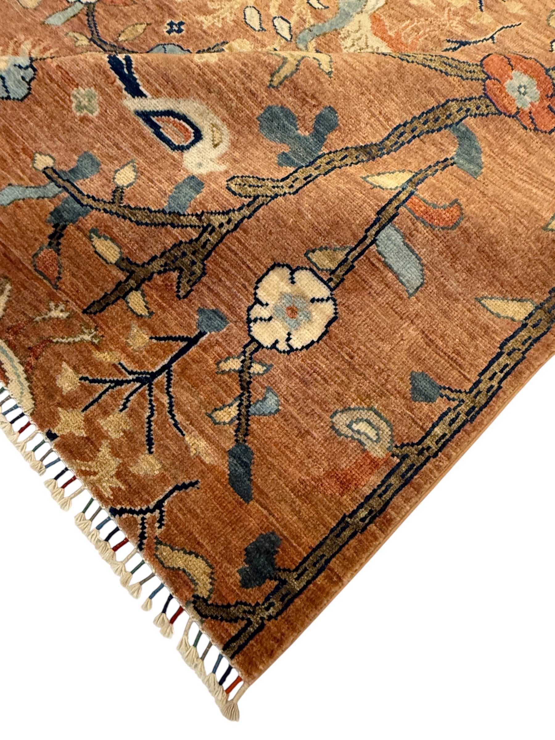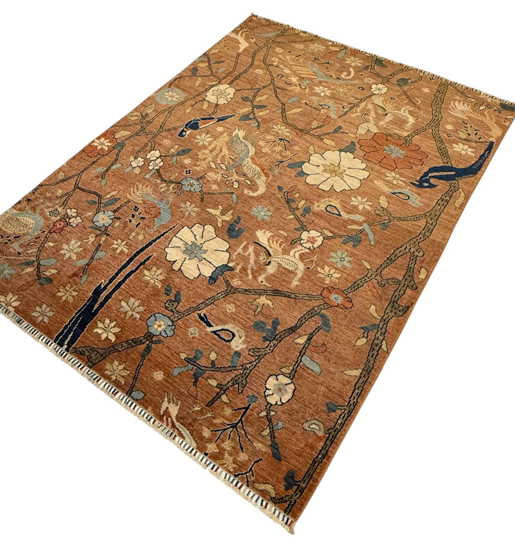 Afghaanse Ushak Ziegler tapijt gemaakt van handgesponnen wol en plantaardige verfstoffen.