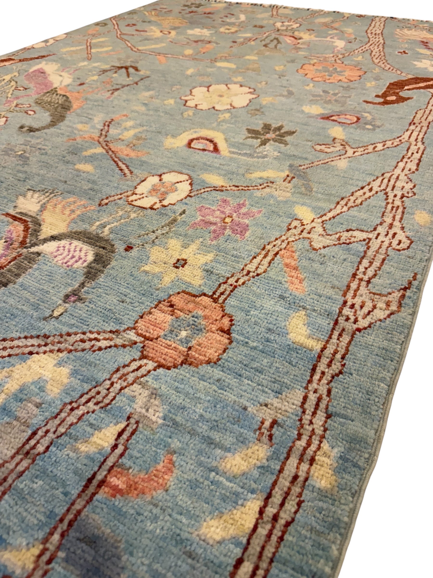 Ushak tapijten staan bekend om de zijdezachte, glanzende wol waarmee ze werken. De kleurstoffen neigen naar: kaneel, terracotta tinten, goud, blauw, groen, ivoor, saffraan en grijs.