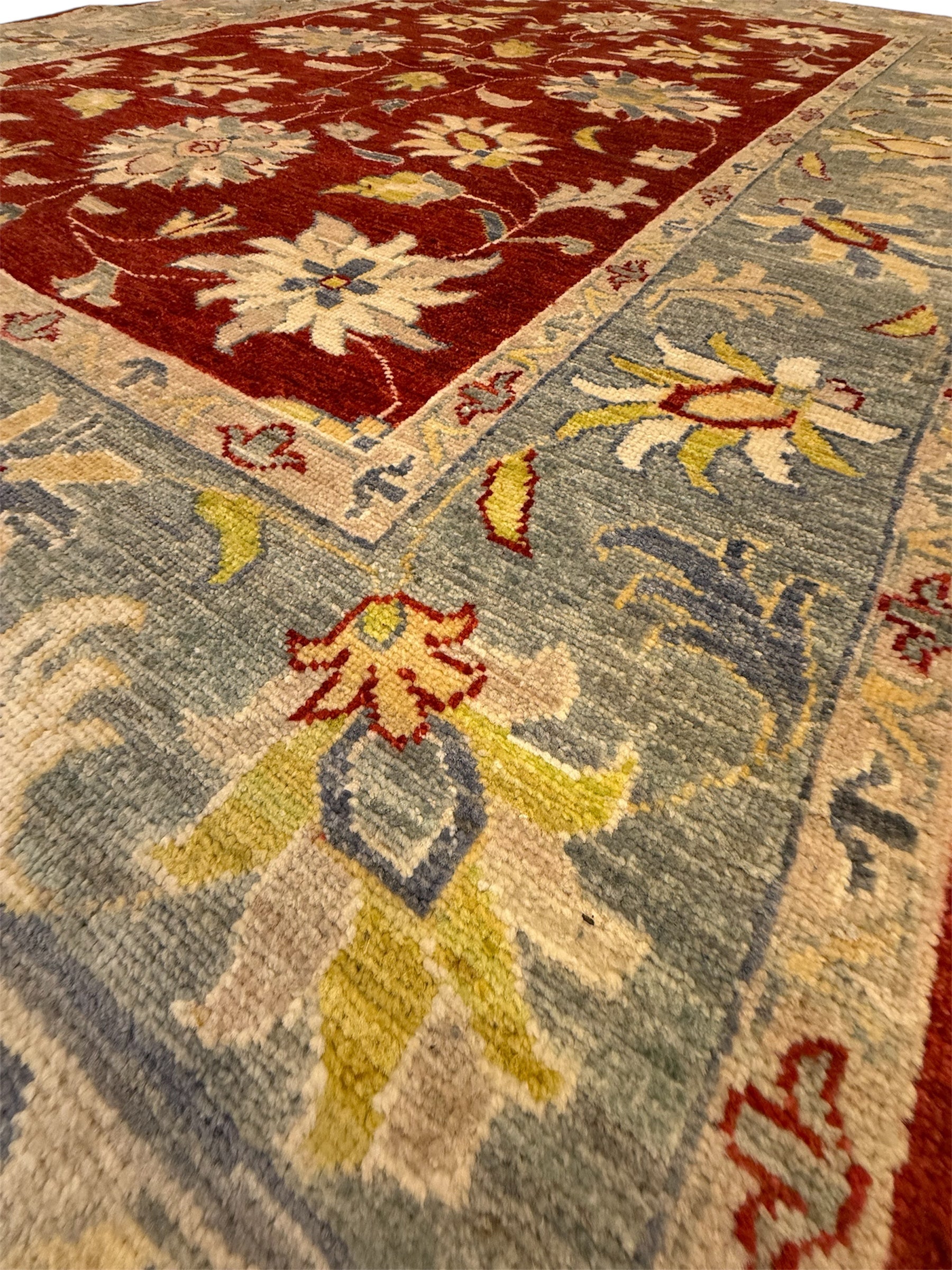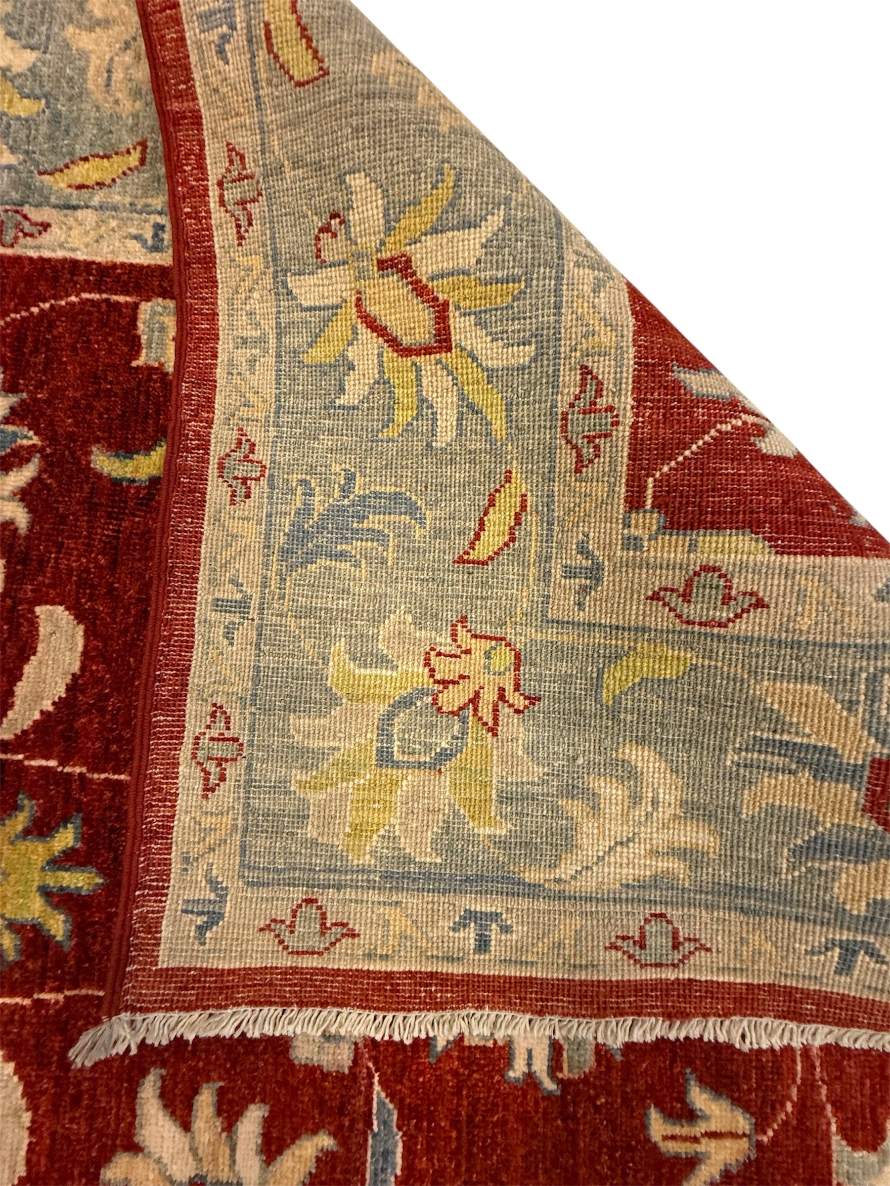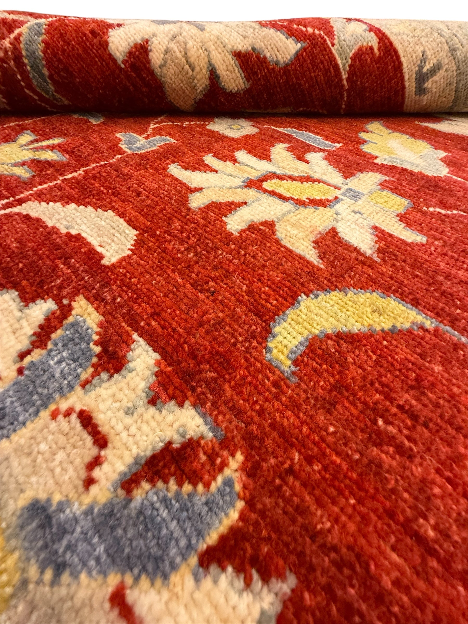 Afghaanse Ziegler tapijt gemaakt van handgesponnen wol en plantaardige verfstoffen.