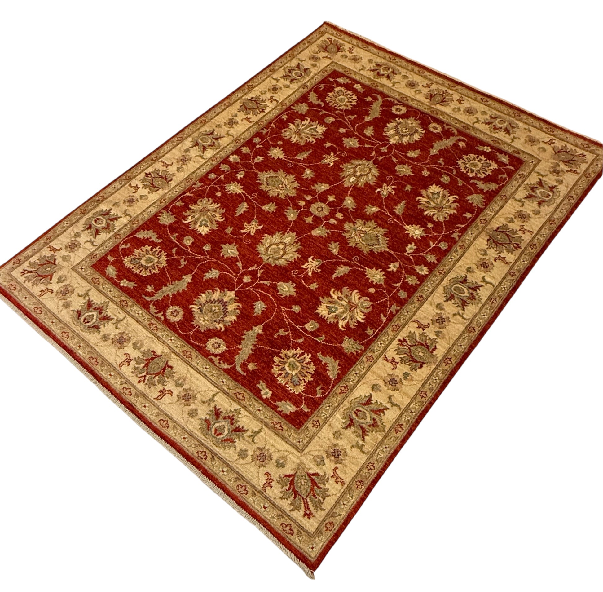 Afghaanse Ziegler tapijt gemaakt van handgesponnen wol en plantaardige verfstoffen.