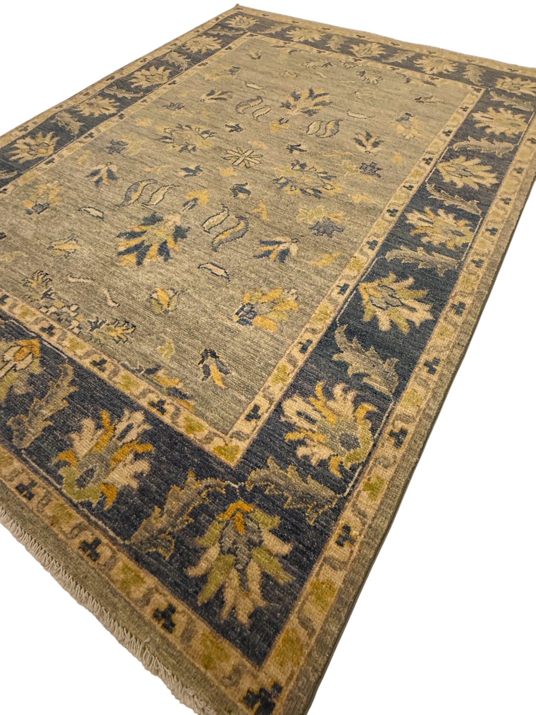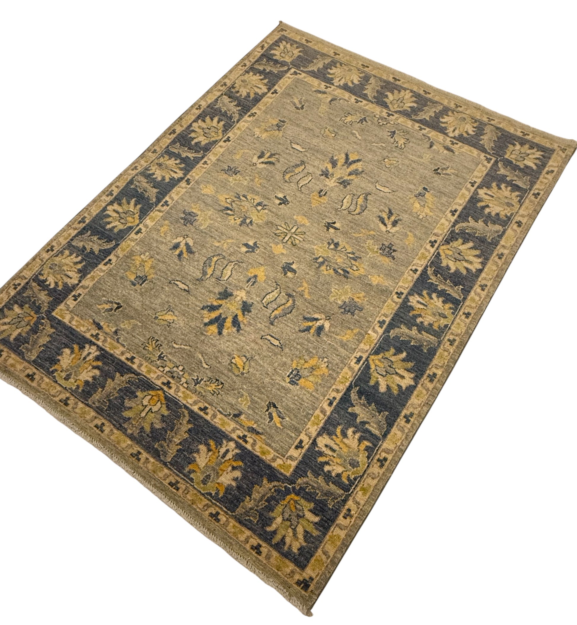 Afghaanse Ziegler tapijt gemaakt van handgesponnen wol en plantaardige verfstoffen.
