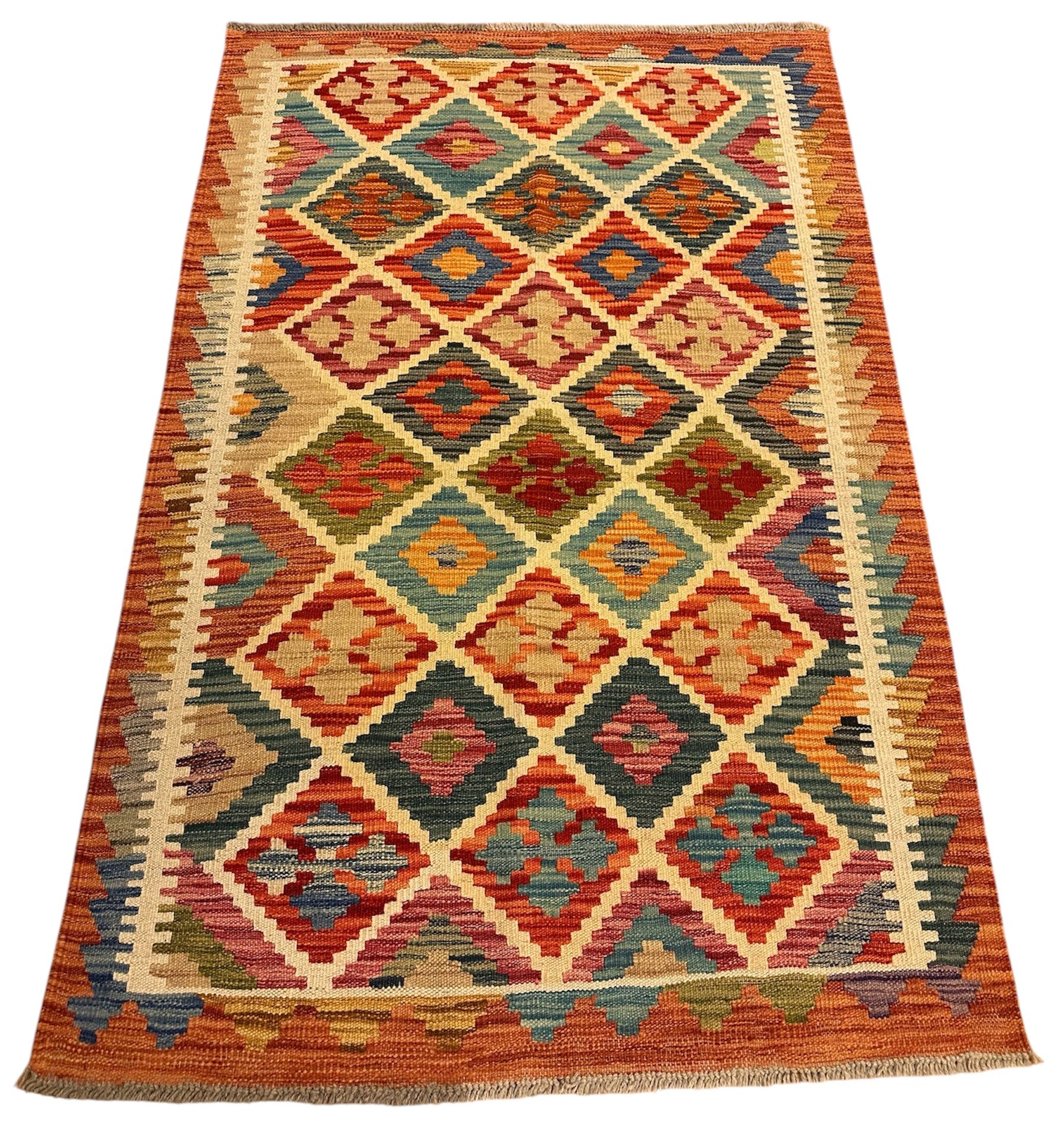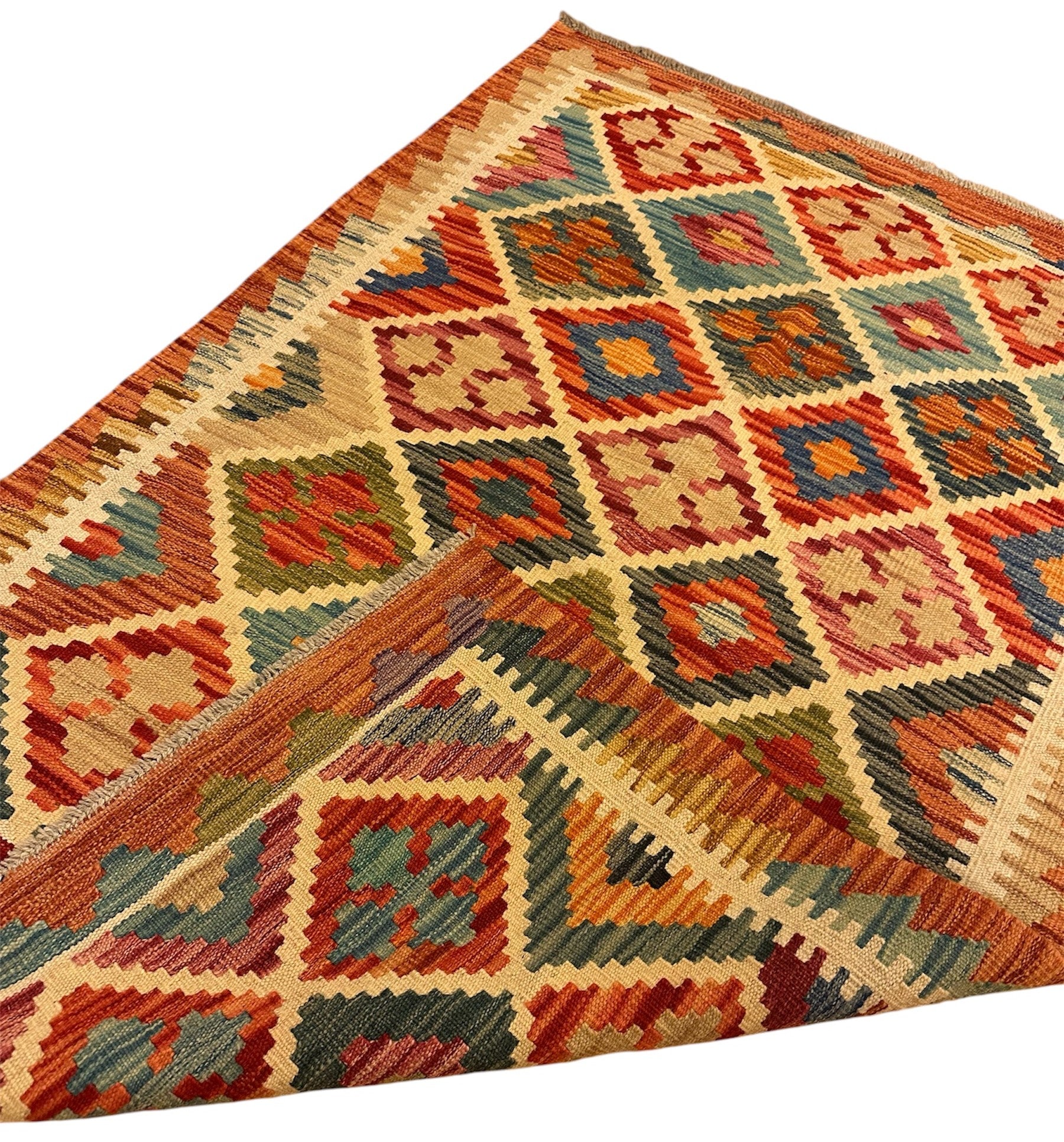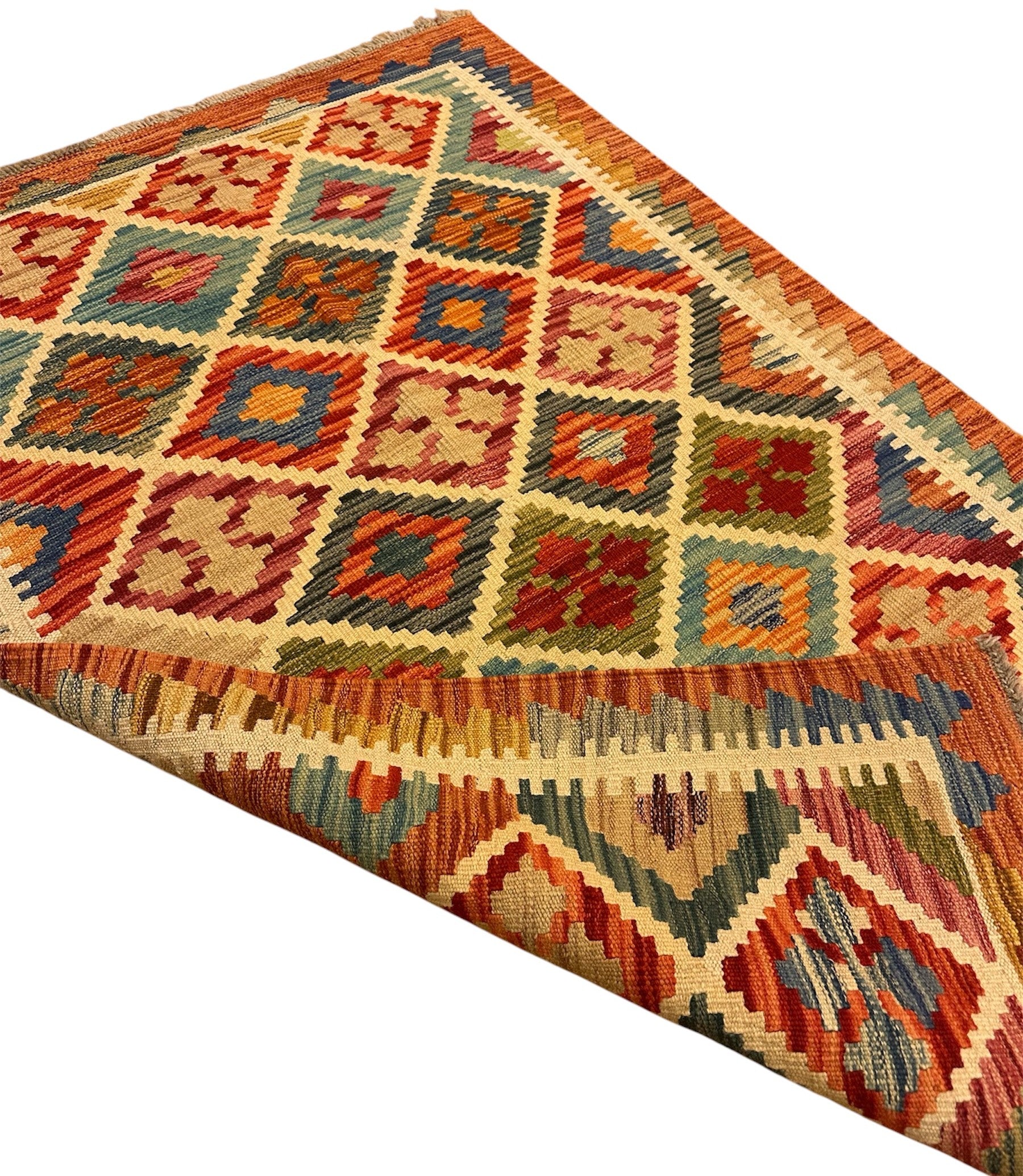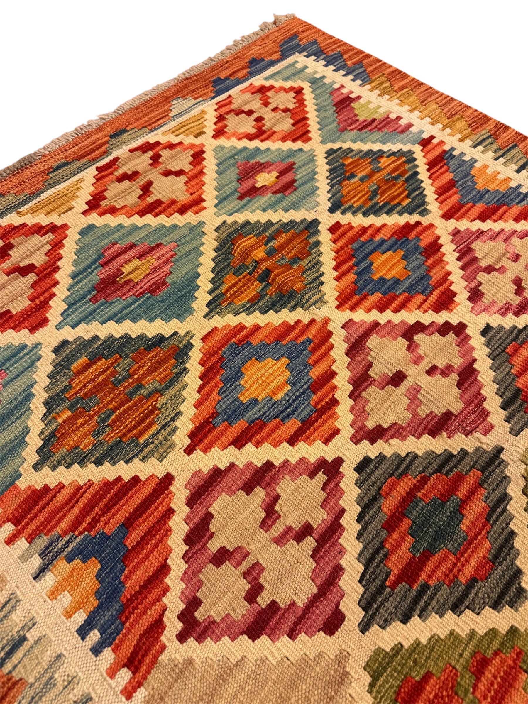 Handgeweven Kelim vloerkleed van 100% Schapenwol Afghaanse wol.