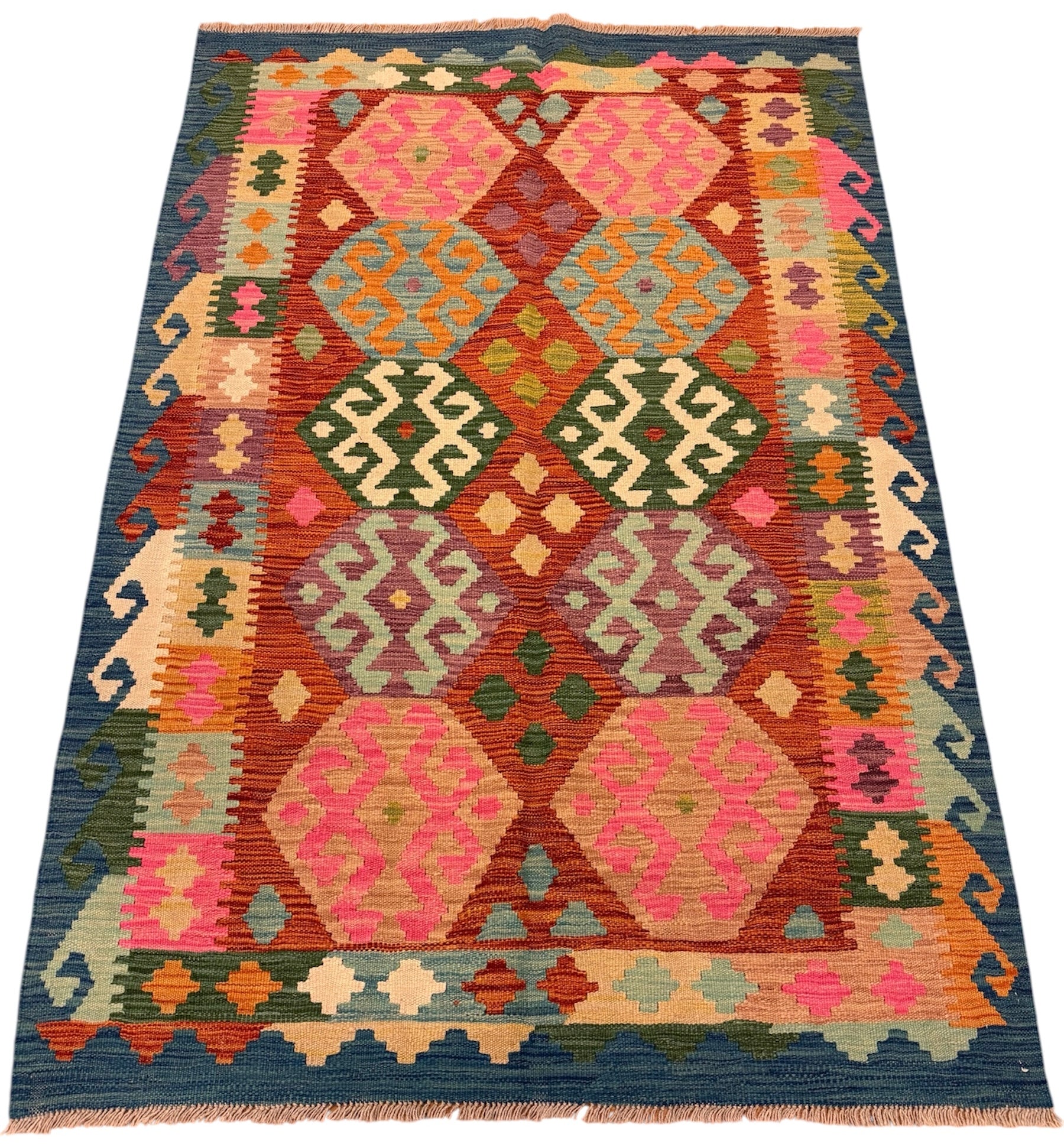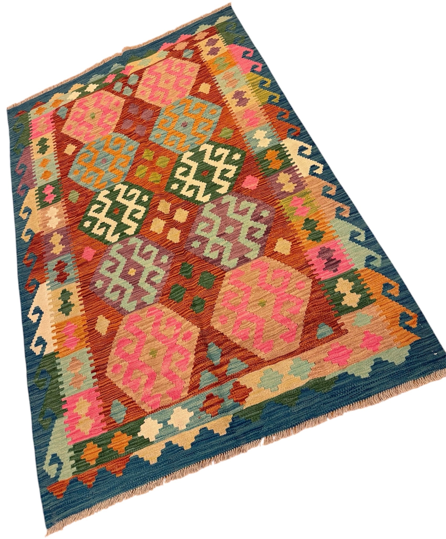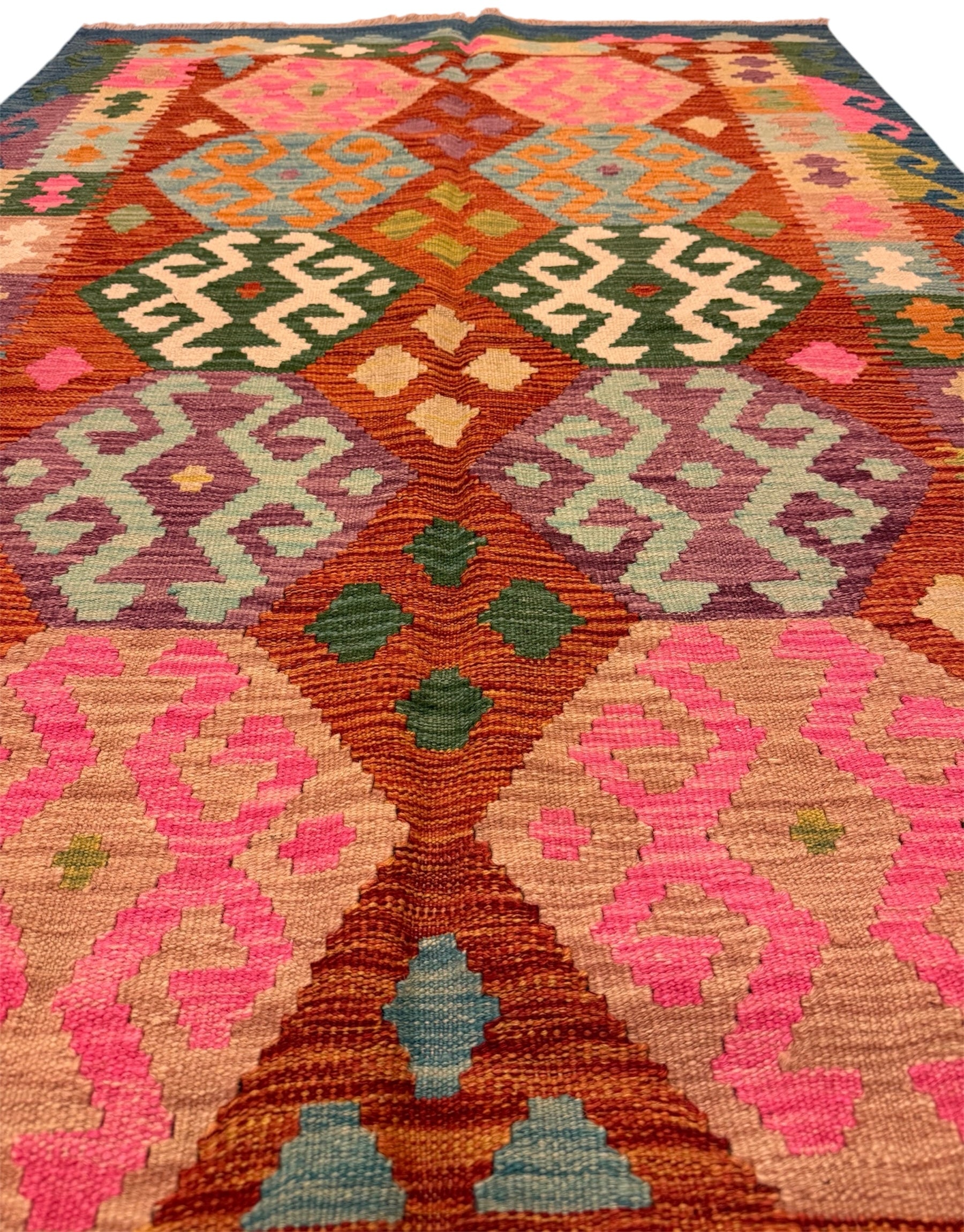 Handgeweven Kelim vloerkleed van 100% Schapenwol Afghaanse wol.