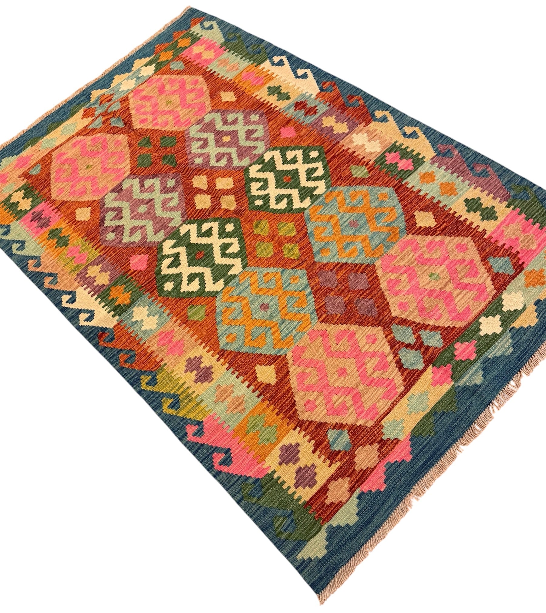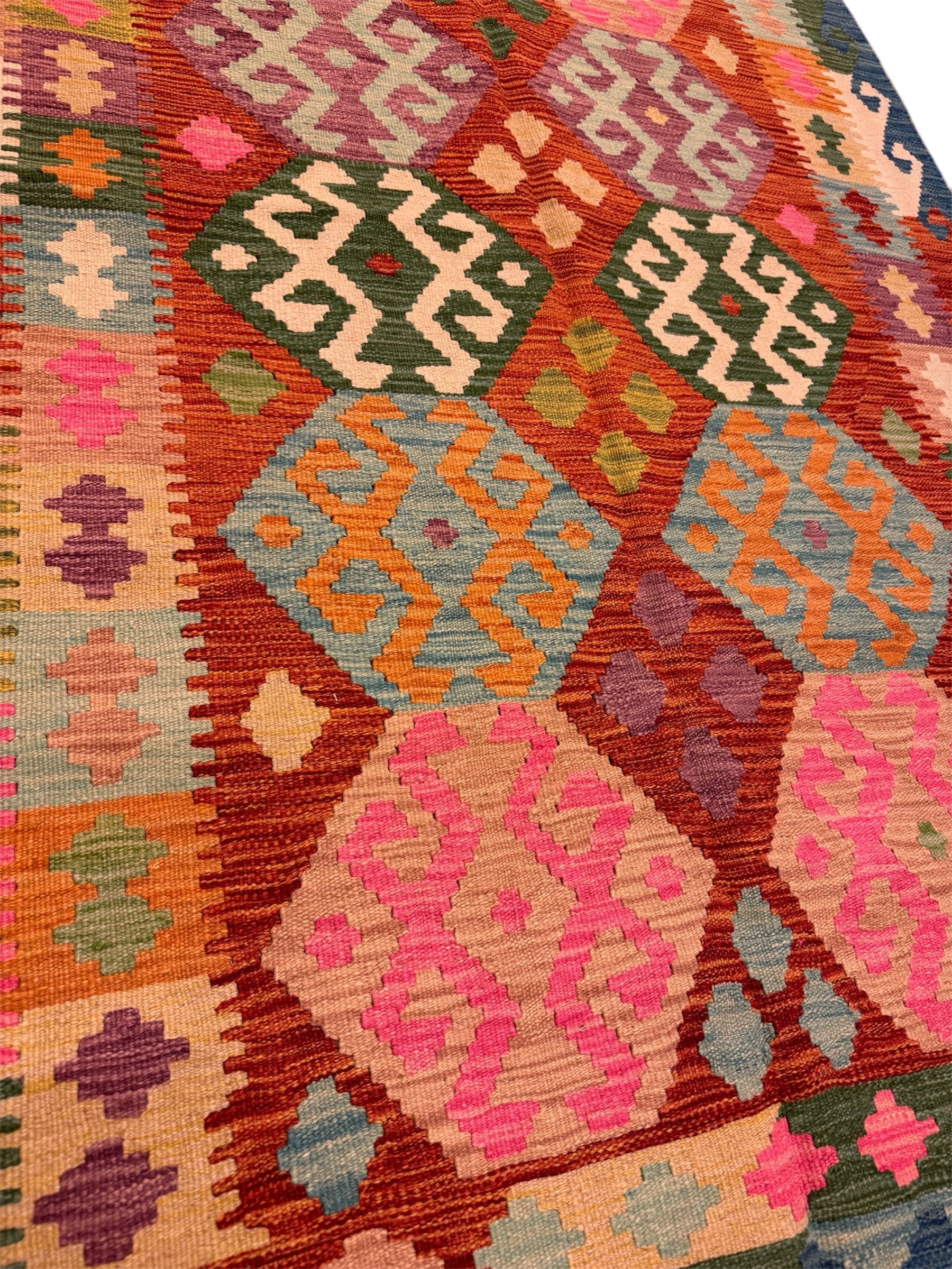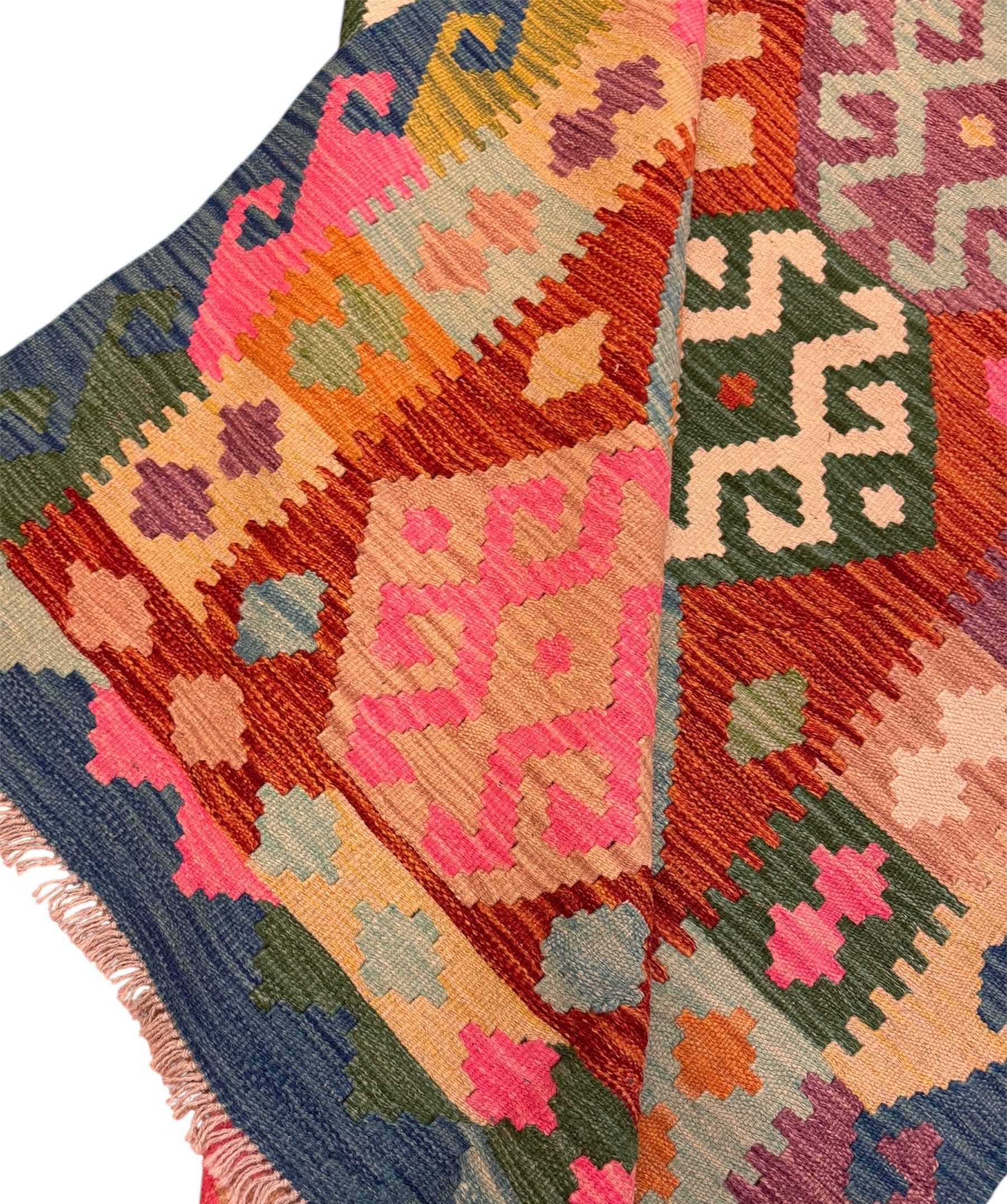Handgeweven Kelim vloerkleed van 100% Schapenwol Afghaanse wol.