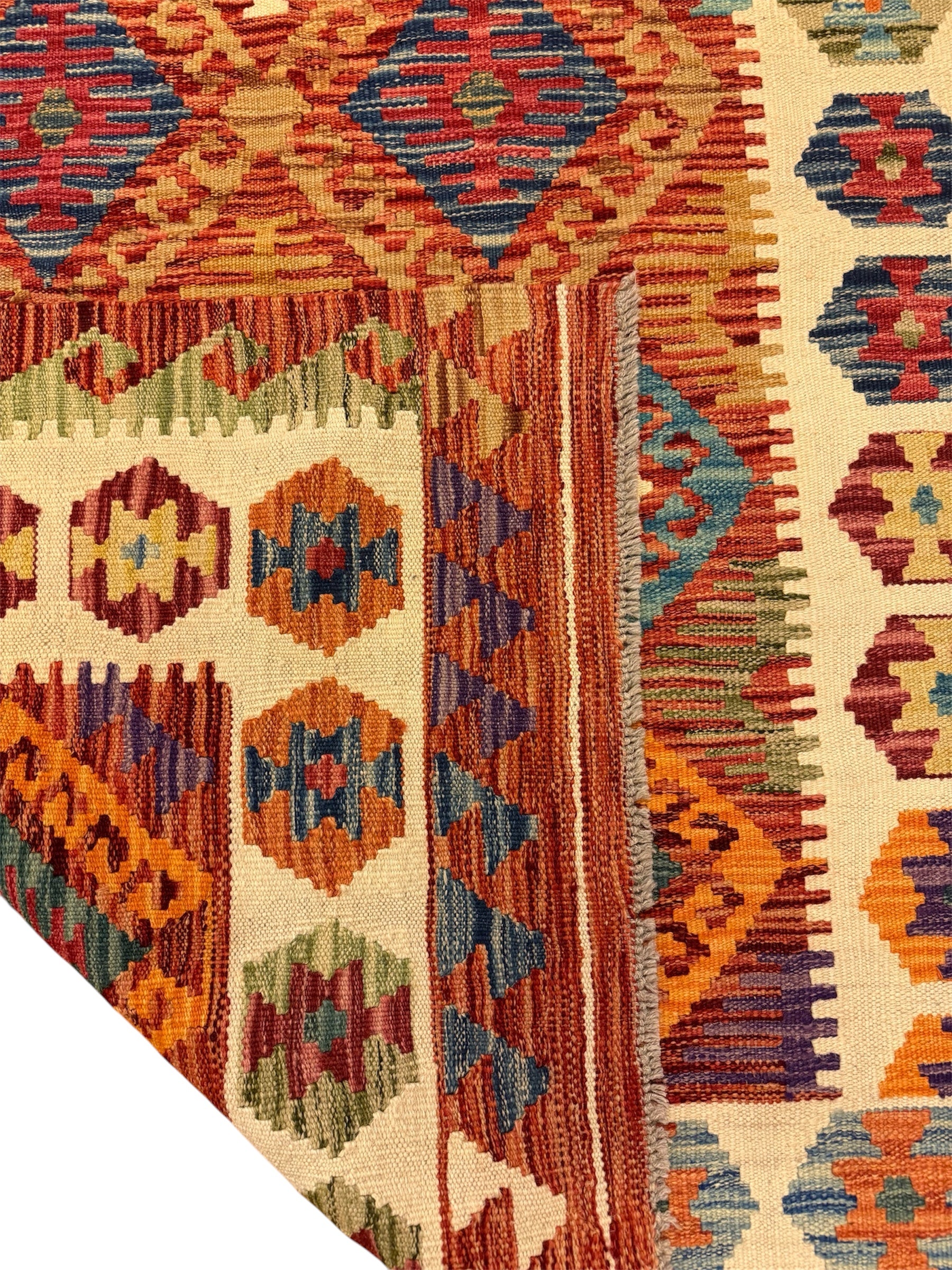 Handgeweven Kelim vloerkleed van 100% Schapenwol Afghaanse wol.