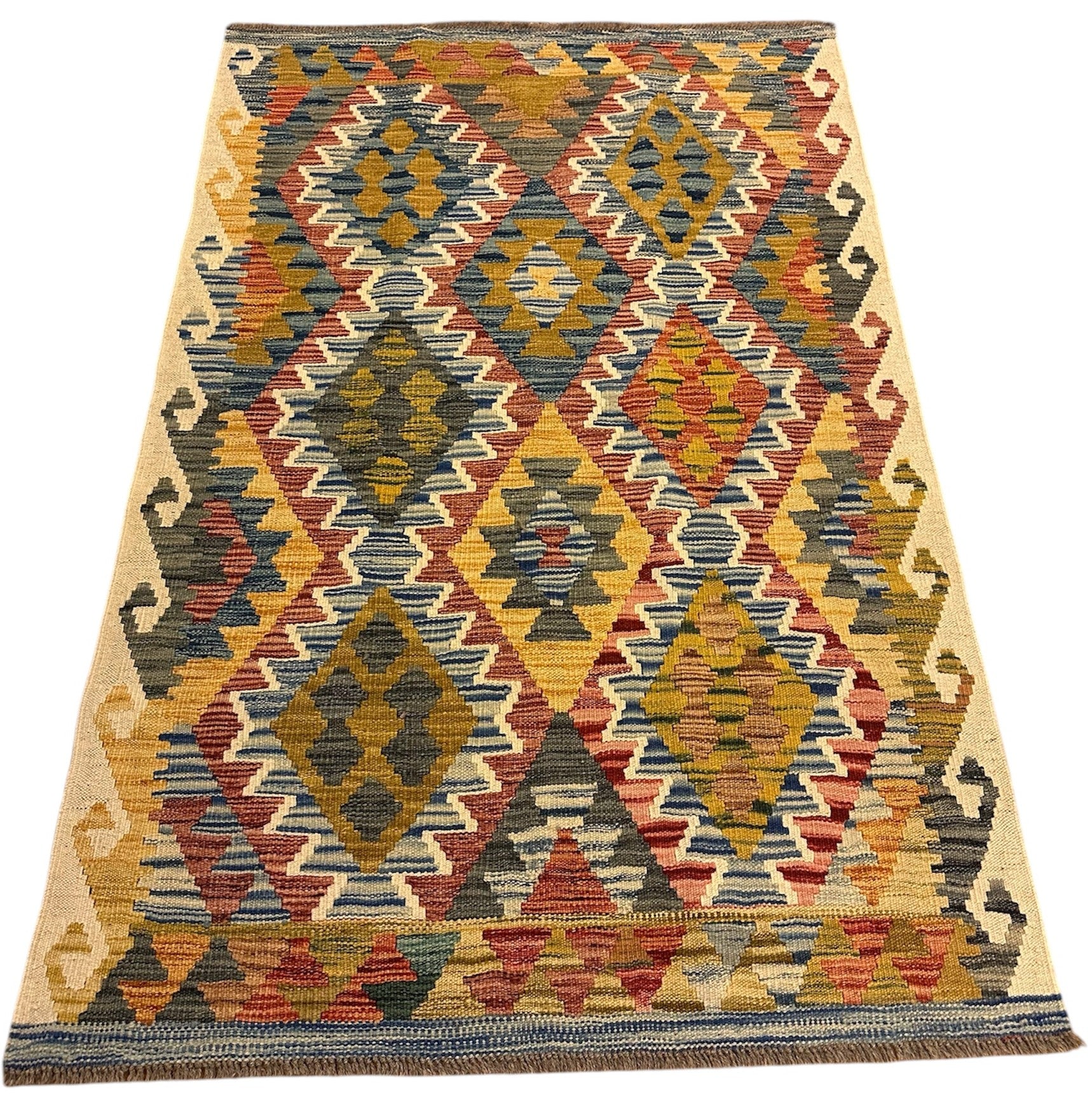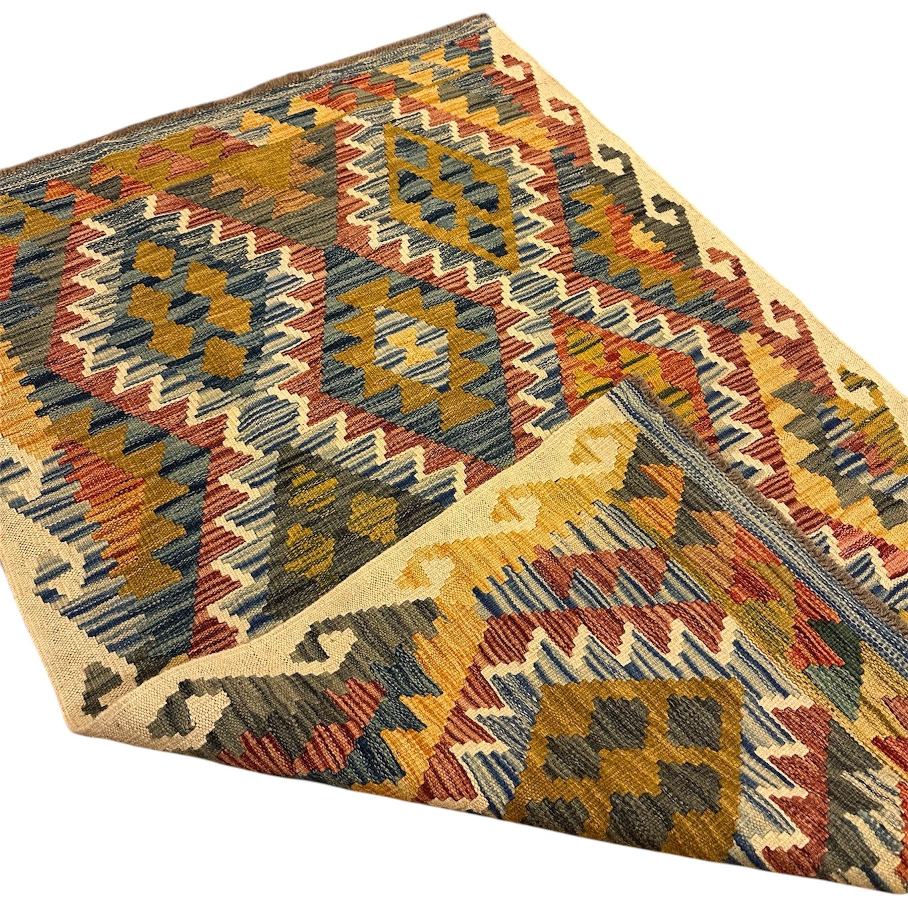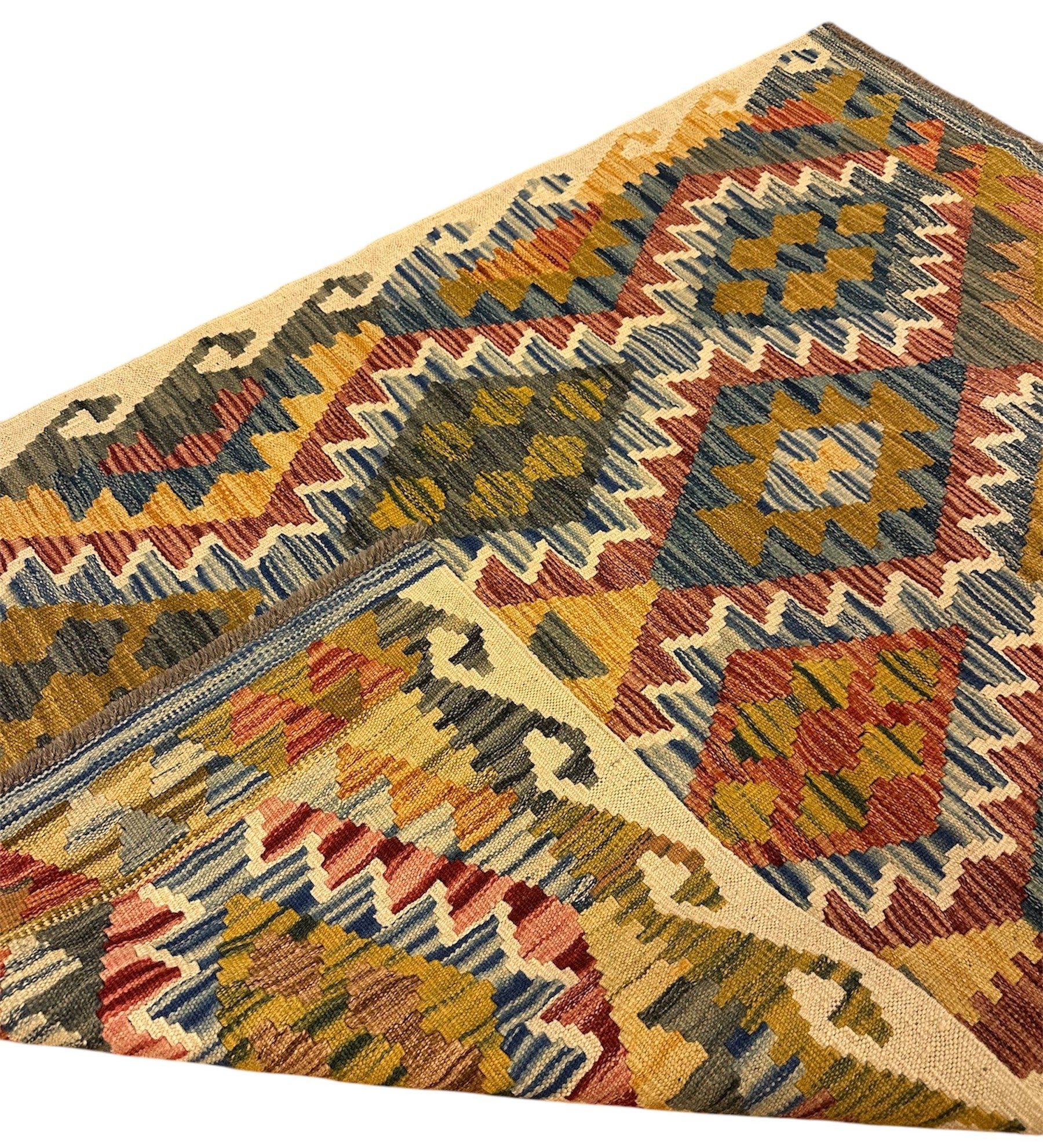 Handgeweven Kelim vloerkleed van 100% Schapenwol Afghaanse wol.