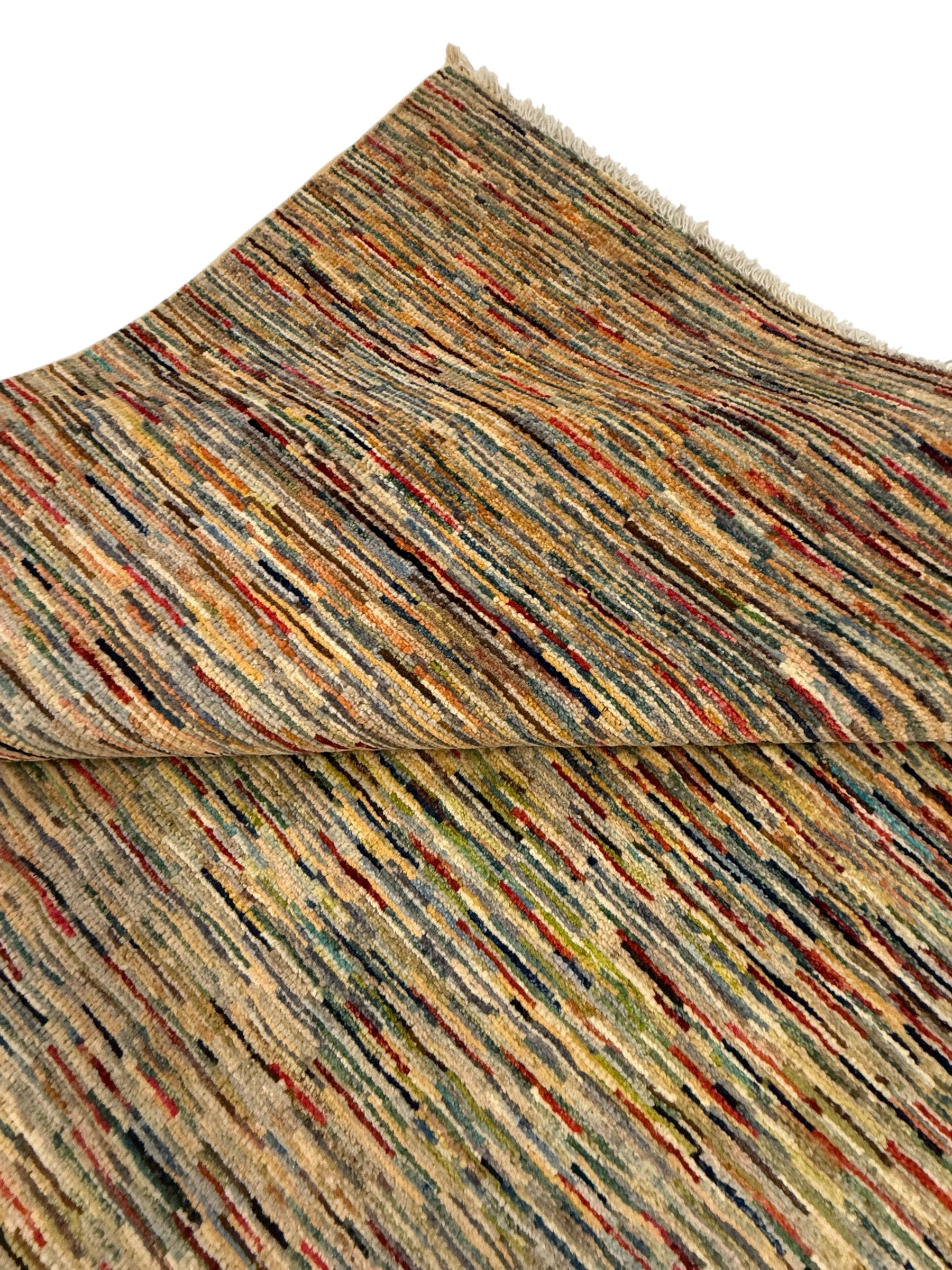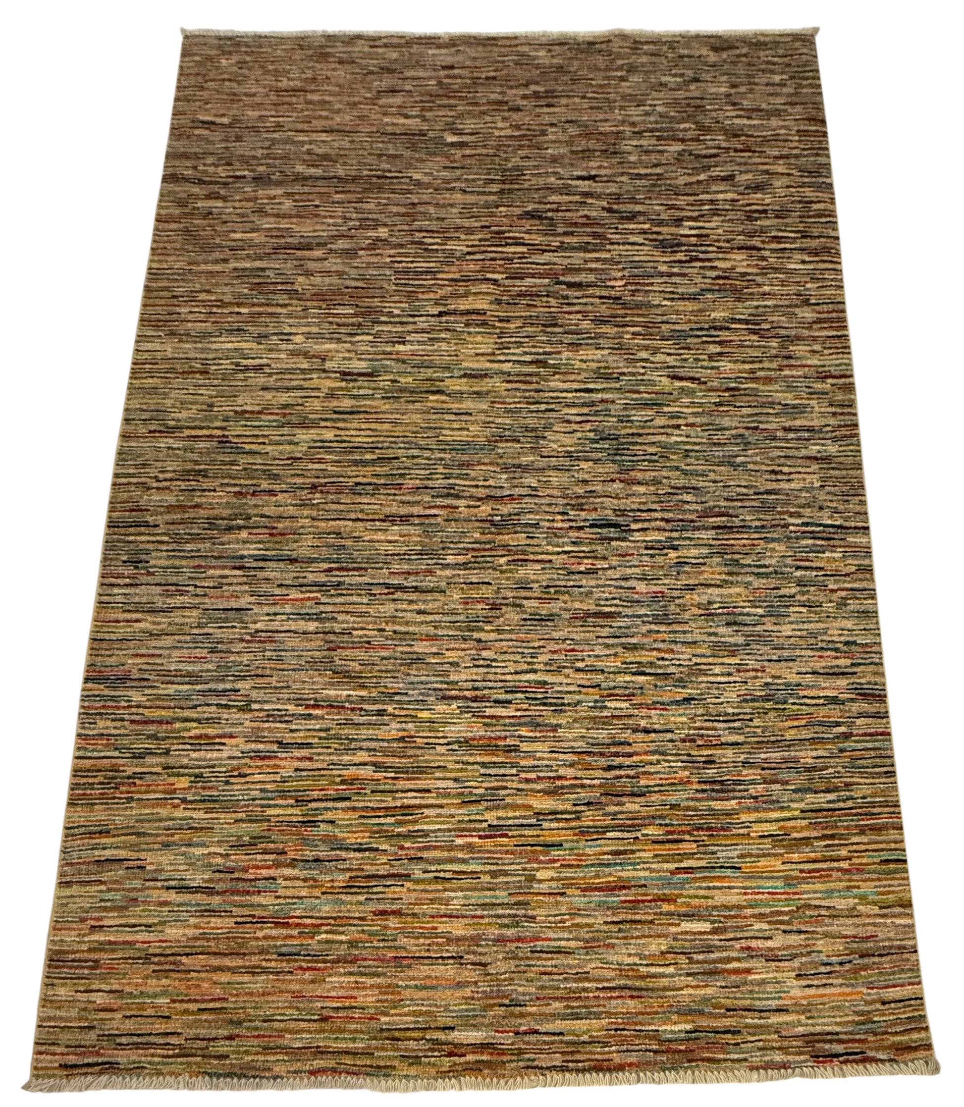 Het Gabbeh Natural vloerkleed is gemaakt van hoogwaardige wol, die met de hand is geknoopt door ervaren ambachtslieden. Het heeft een natuurlijke kleur die varieert van beige tot lichtbruin, met subtiele tinten en kleurschakeringen die het een unieke uitstraling geven. Het tapijt heeft ook een dikke en zachte textuur, waardoor het heerlijk aanvoelt onder de voeten.