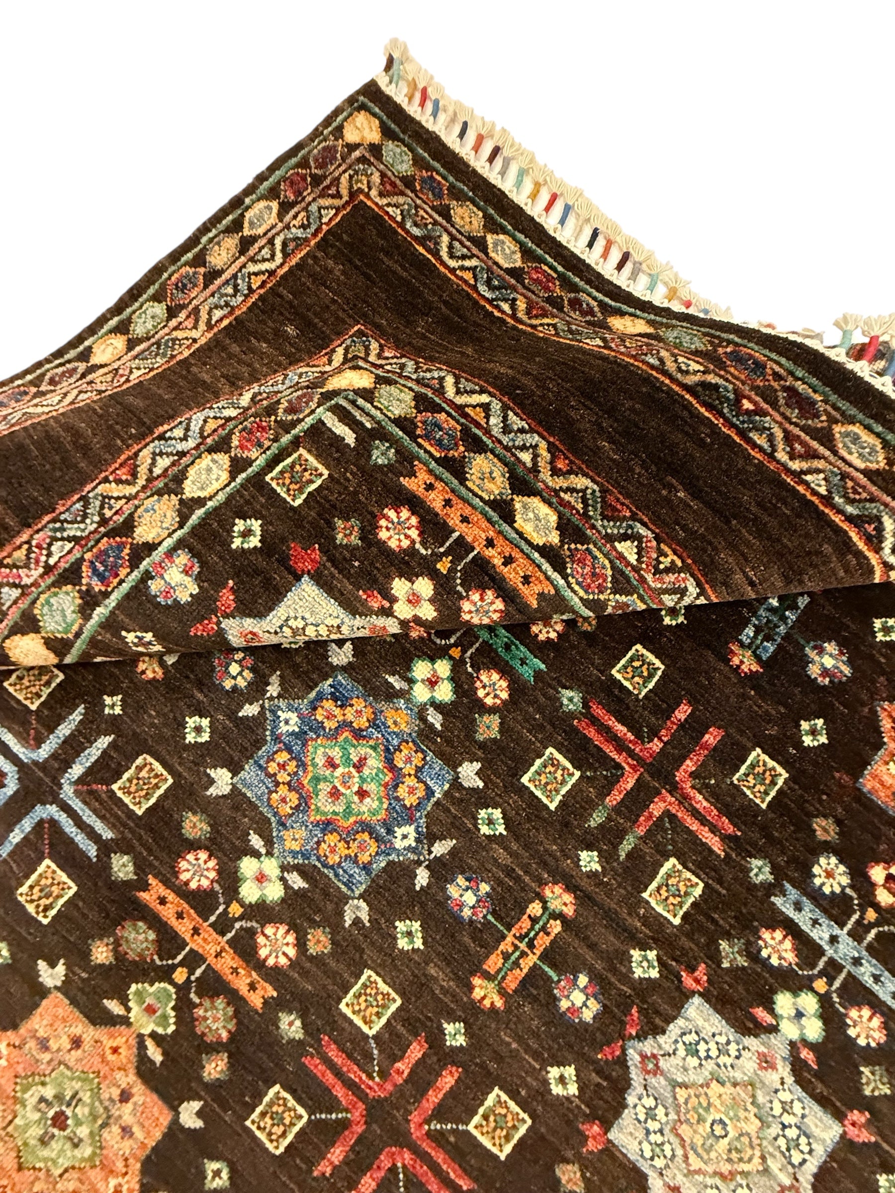 Afghaanse Gabbeh Loribaft tapijt gemaakt van handgesponnen wol en plantaardige verfstoffen.