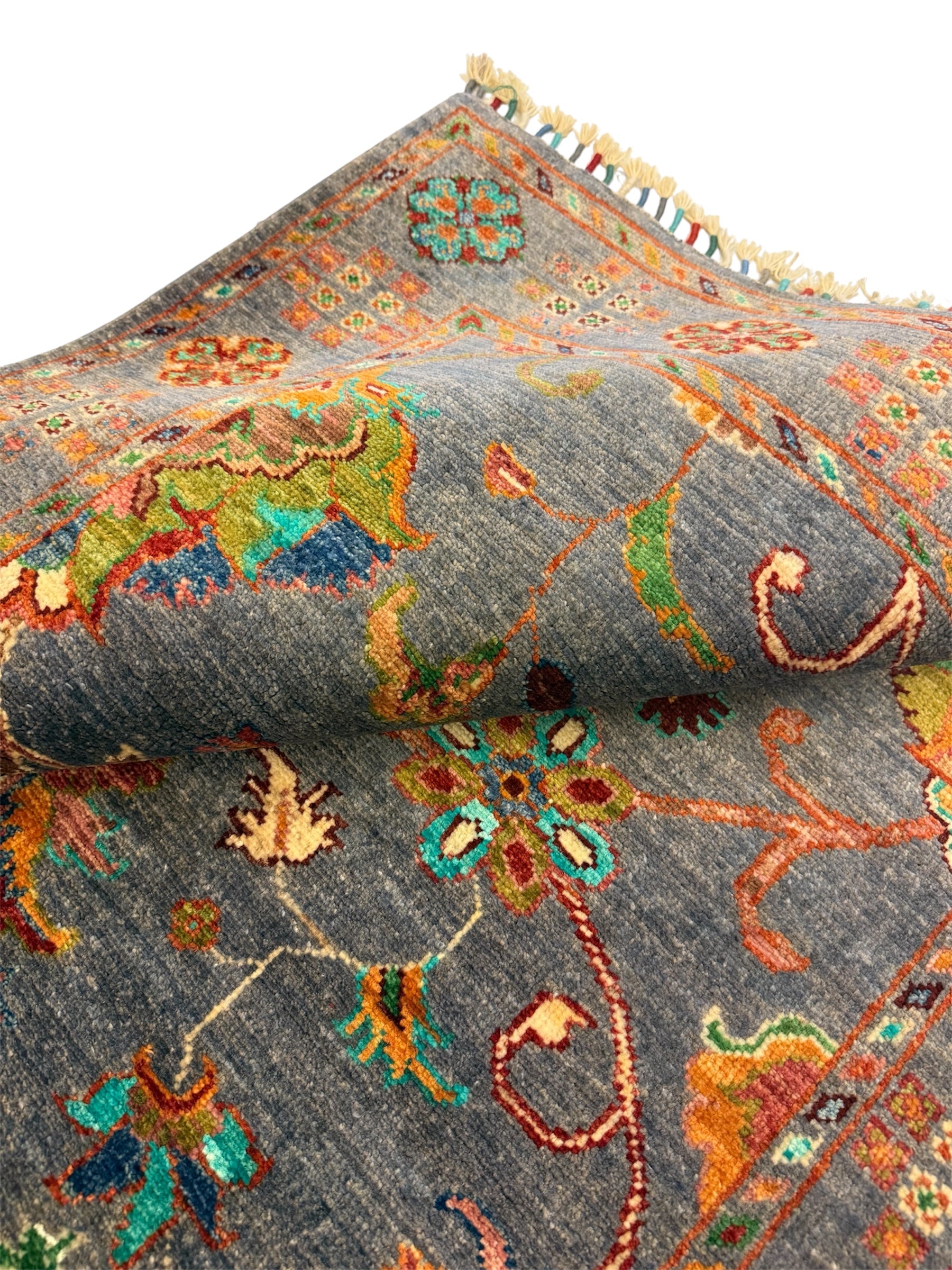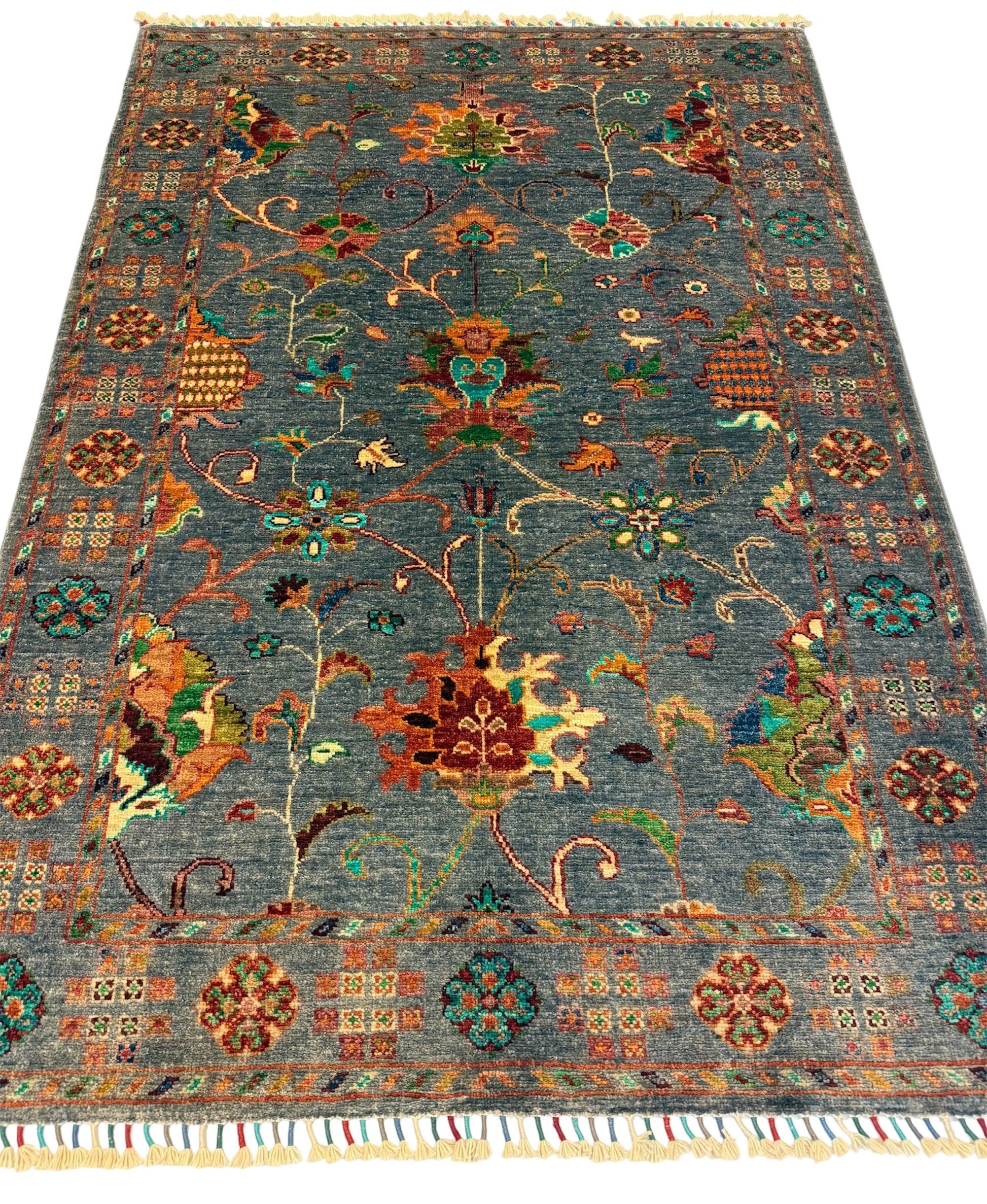 Afghaanse Sulteni Ziegler tapijt gemaakt van handgesponnen wol en plantaardige verfstoffen.